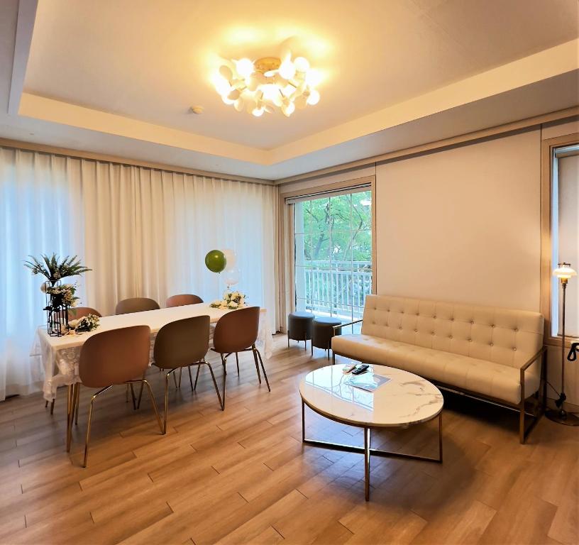 객실은 호텔형과 콘도형 두 가지로 나뉘며, 최대 6인까지 수용 가능한 넉넉한 크기가 특징입니다. 취사가 가능한 주방이 포함된 객실도 마련되어 있어 장기 투숙이나 가족 여행객에게 인기가 많습니다. 내부는 깔끔한 모던 스타일로 리모델링 되어 쾌적하며, 침구와 욕실 모두 청결 상태가 우수하다는 후기가 많습니다.